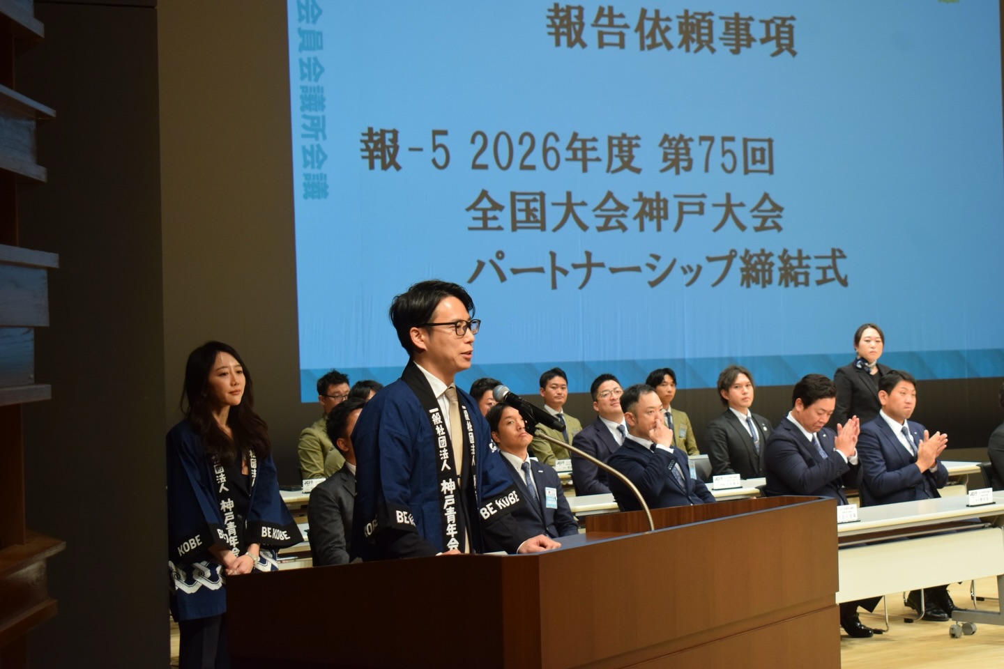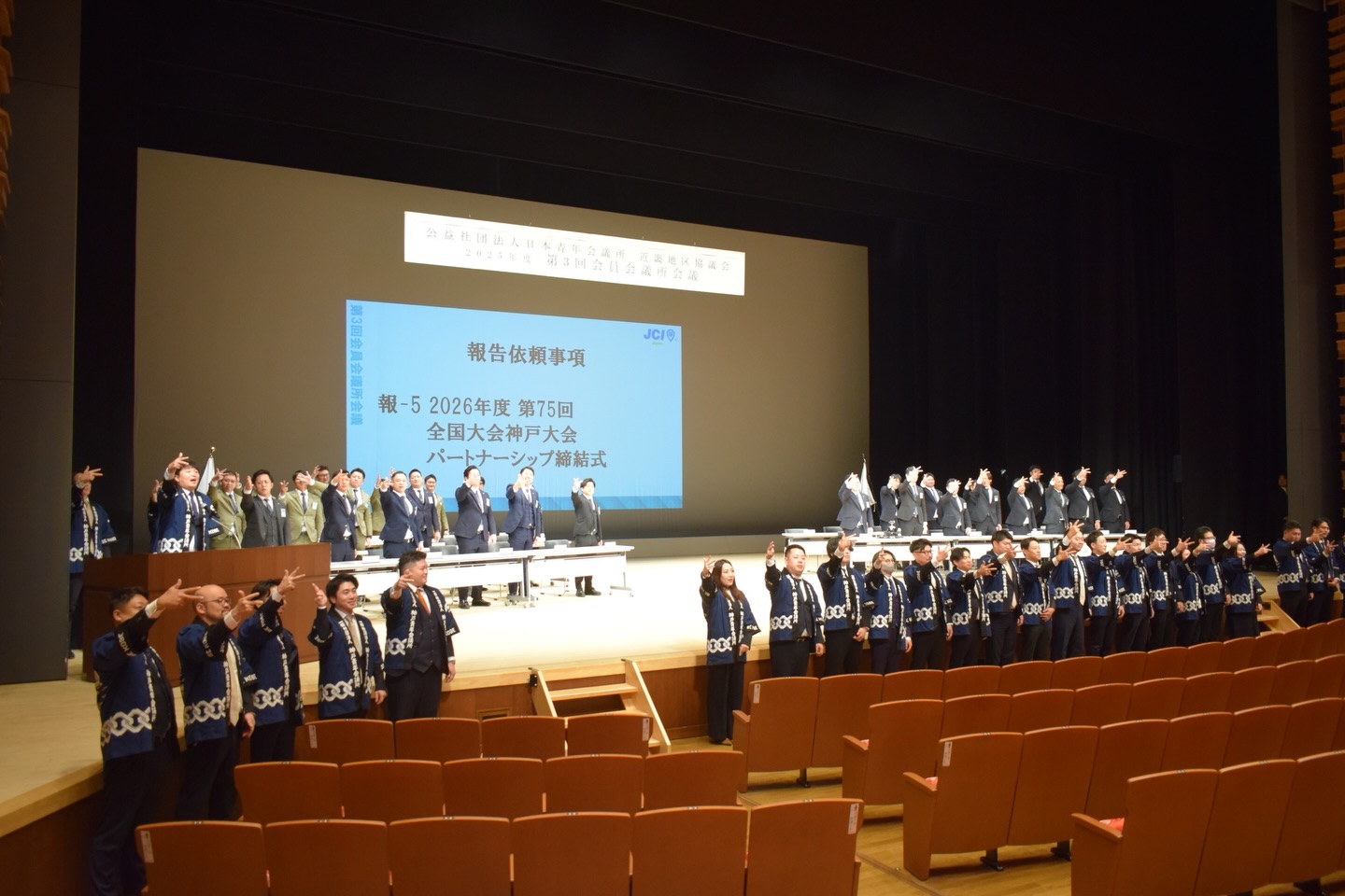 近畿地区会員会議所会議にて、第75回全国大会神戸大会 副主管パートナーシップ締結式が執り行われました。
