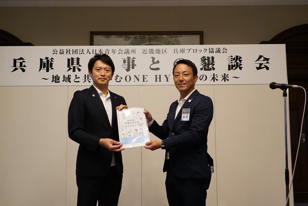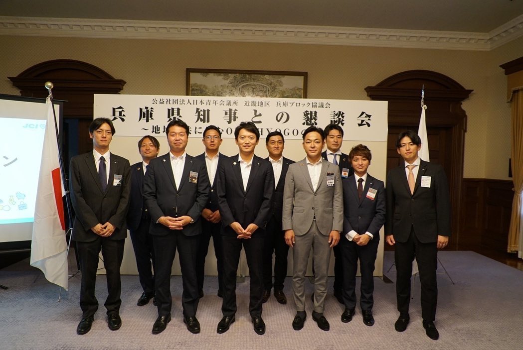 【知事懇談会が開催されました】 2022年9月13日 2022年9月13日 一般社団法人神戸青年会議所 兵庫ブロック協議会にて、 兵庫県各地の青年会議所の理事長らと齋藤元彦兵庫県知事による 知事懇談会が開催されました。 兵庫県各地の課題について、知事の考え方を教えてもらったり、 知事に解決策を提案するなどして議論し、 今後も課題解決に向けて官民が一体となって協力・対応することを誓いました。 RENEW〜夢を描き挑戦しよう〜 Facebook postLINE